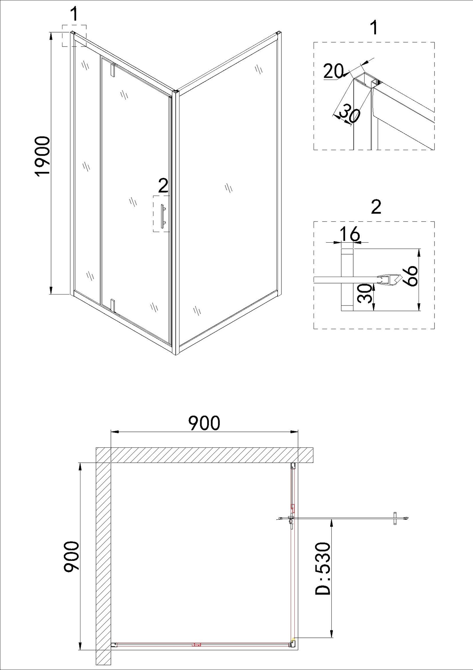 Душевое ограждение NG-0290-08 BLACK (900х900х1900) Niagara Nova
