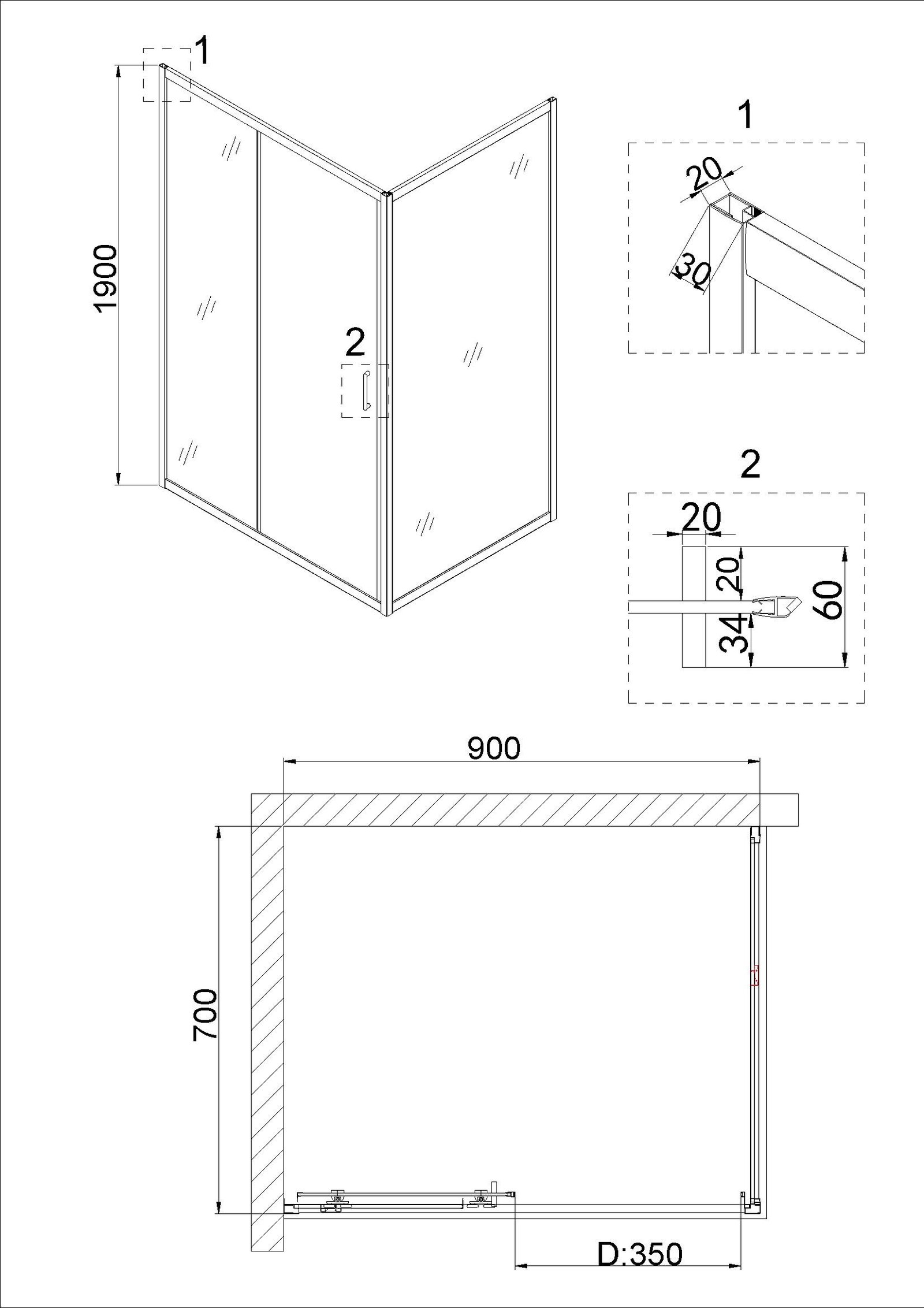 Дверь в нишу NG-82-9AB (90х190) Niagara Nova