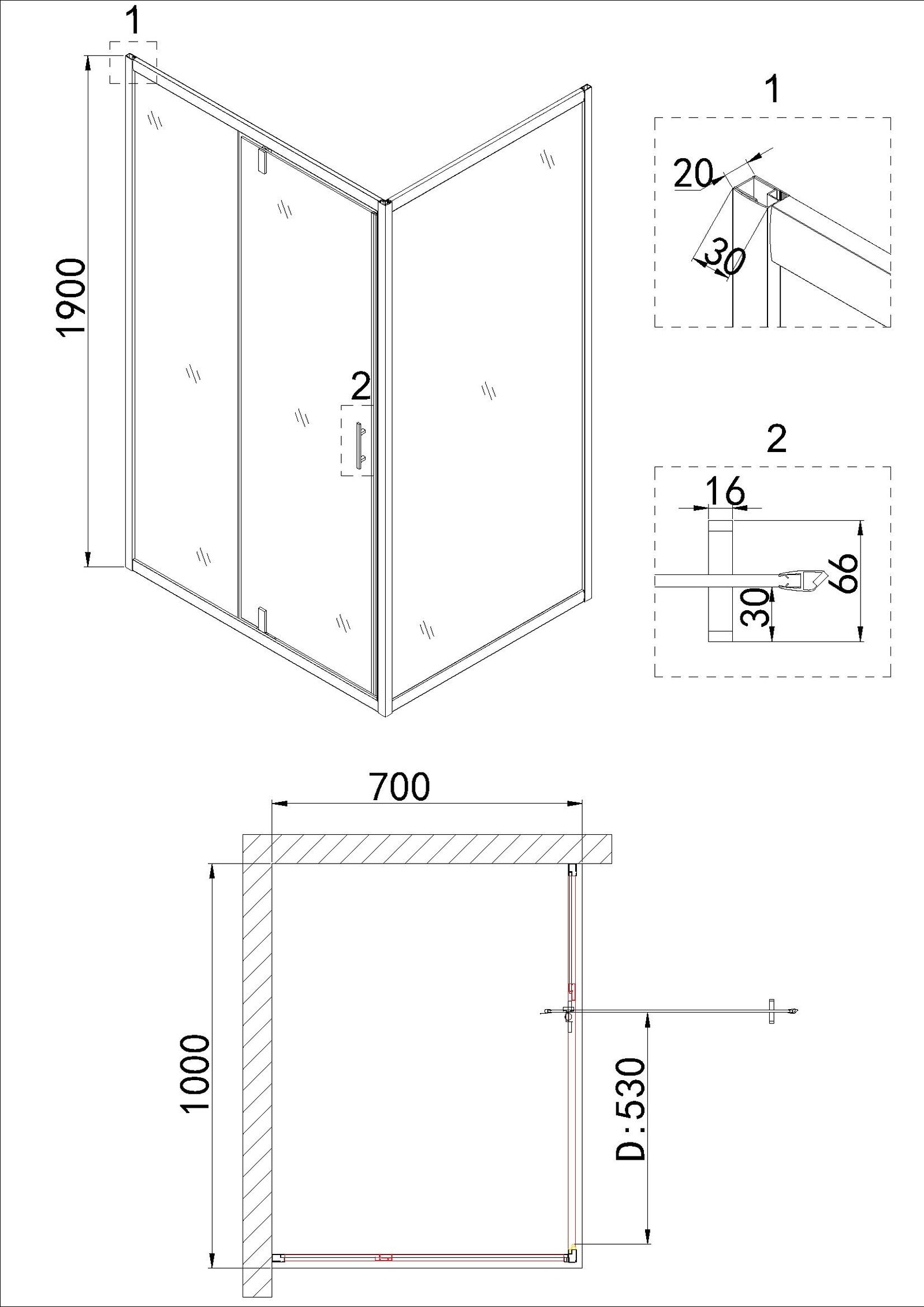 Дверь в нишу NG-83-10AB (100х190) Niagara Nova