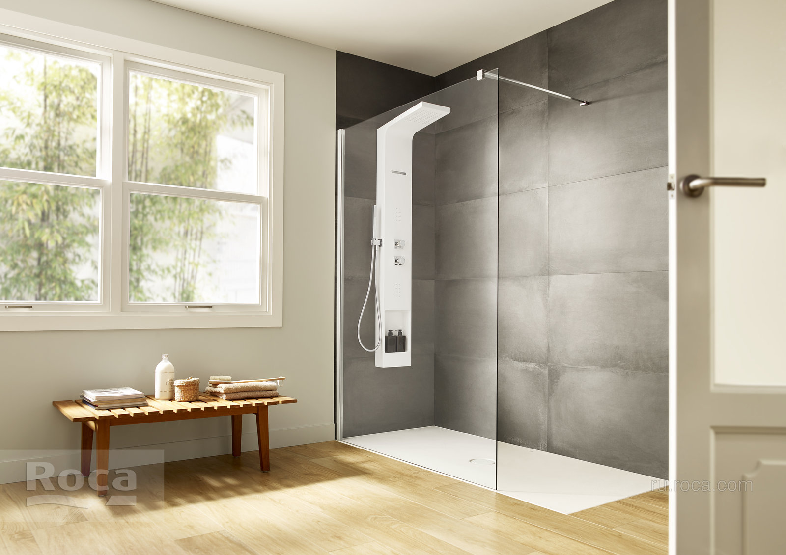 Душевая термостатическая панель из нержавеющей стали и материала Surfex®.