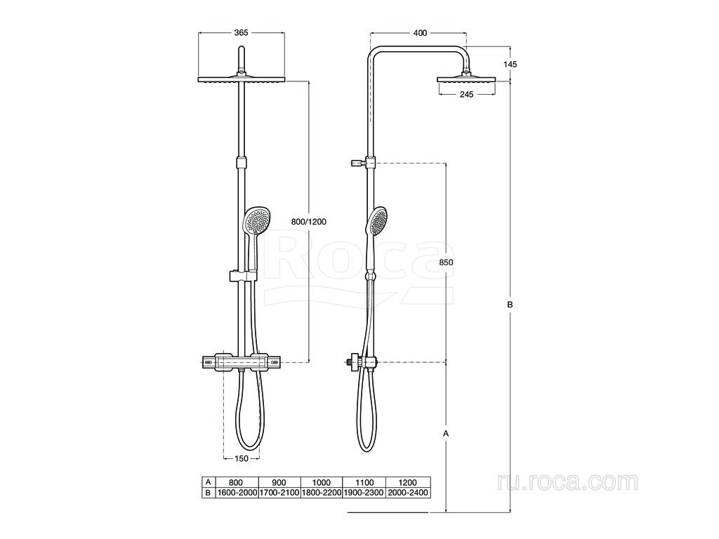 LEVEL-T Душевая стойка с верхним душем и с термостатическим смесителем, регулируемая высота