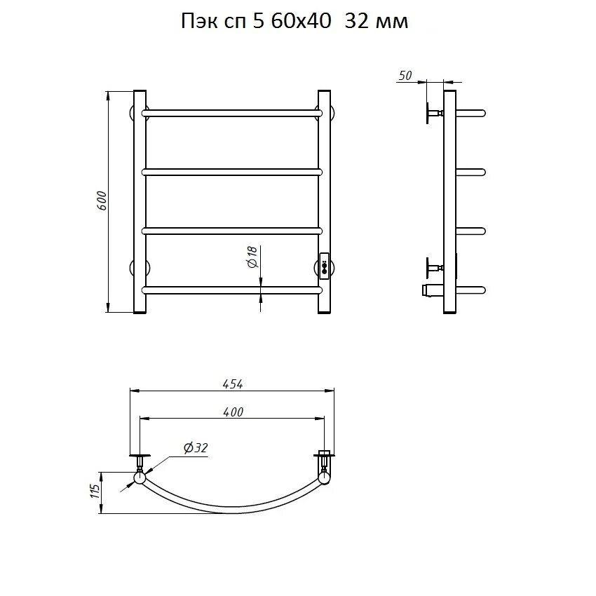 Полотенцесушитель Пэк сп 5 60х40 32 мм
