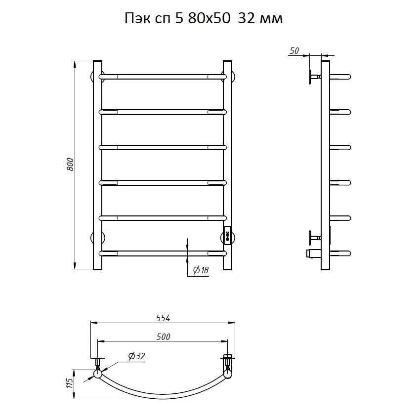 Полотенцесушитель Пэк сп 5 80х50 32 мм