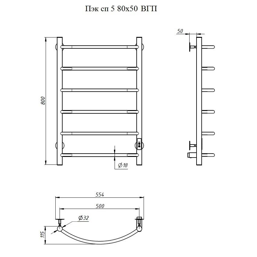 Полотенцесушитель Пэк сп 5 80х50 белый ВГП
