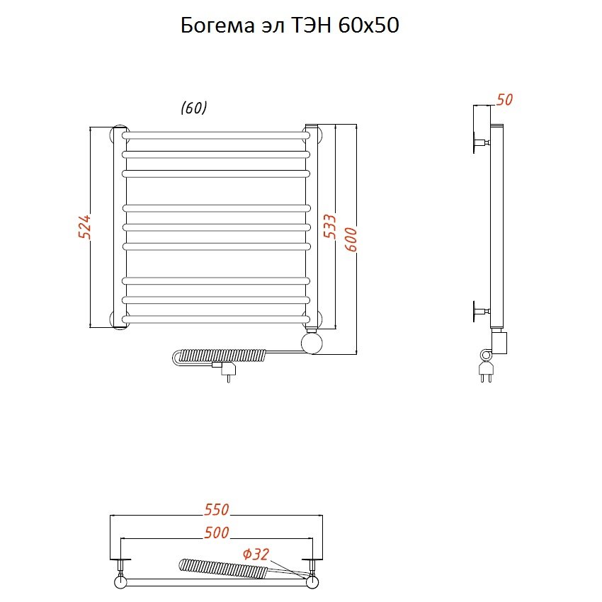 Полотенцесушитель Богема эл ТЭН 60*50 (ЛЦ20)