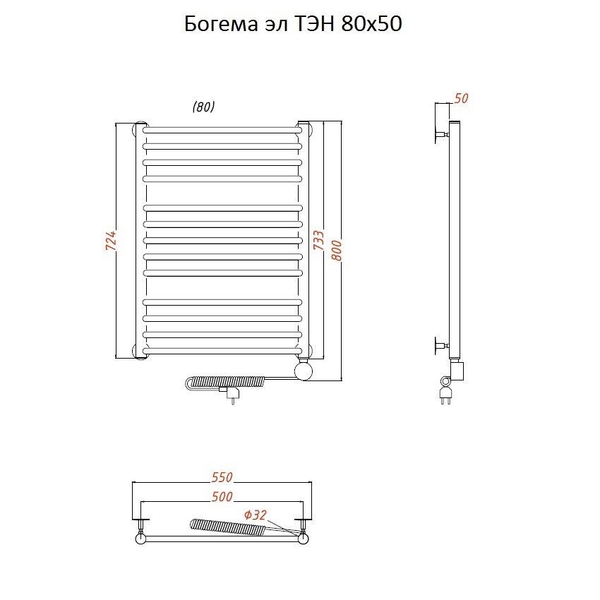Полотенцесушитель Богема эл ТЭН 80*50 (ЛЦ20)