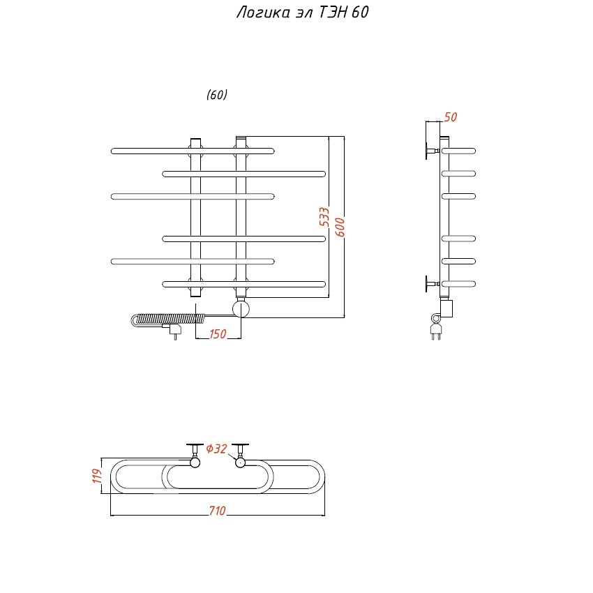 Полотенцесушитель Логика эл ТЭН 60*60 (ЛЦ9)
