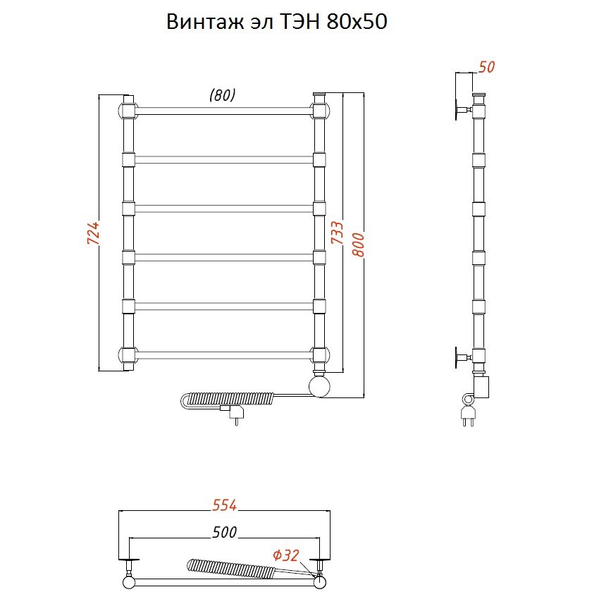 Полотенцесушитель Винтаж эл ТЭН 80*50 (ЛЦ33)