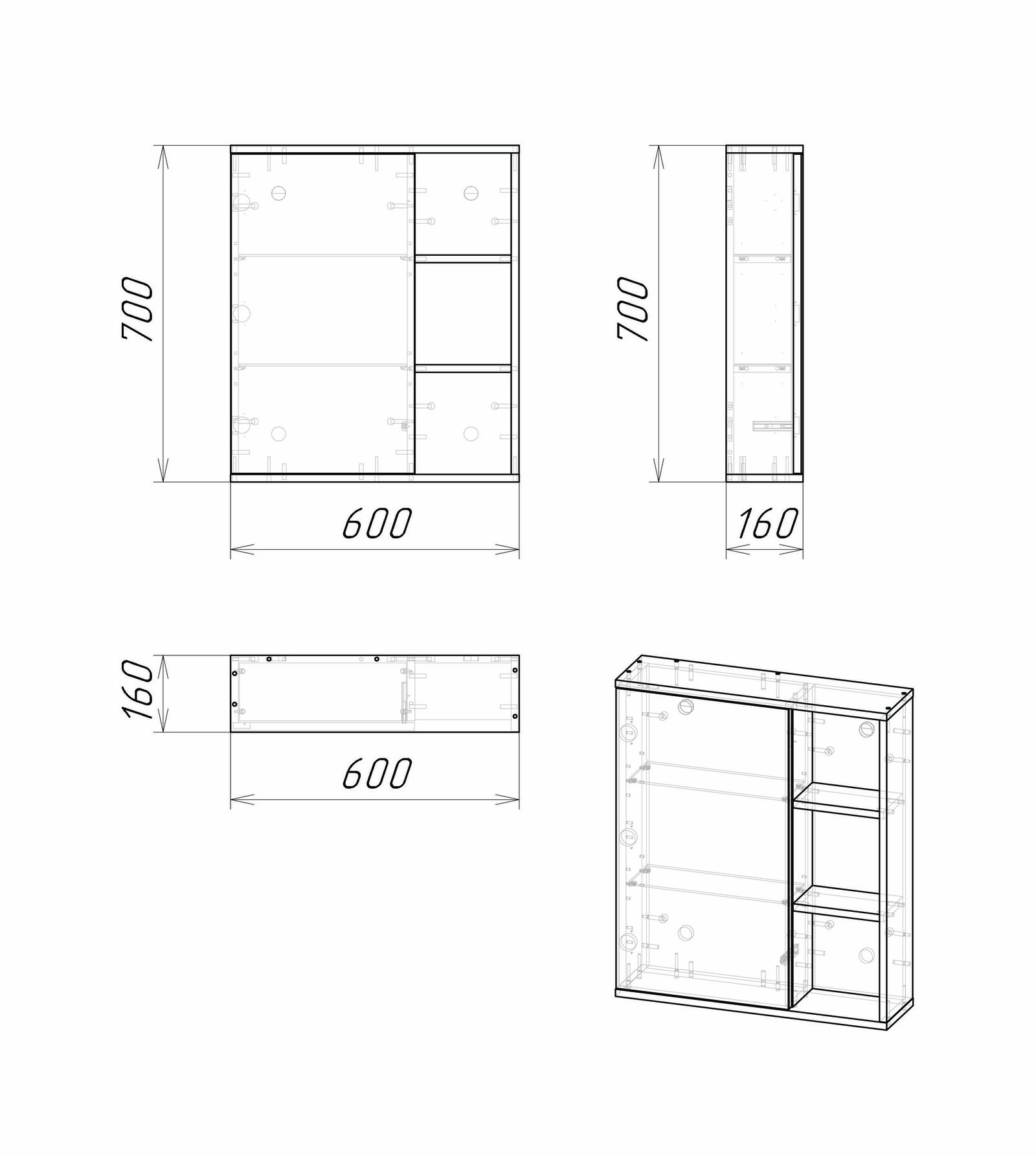Шкаф-зеркало имеет универсальную ориентацию: верх и низ шкафа можно менять местами, а дверца может открываться как влево, так и вправо.