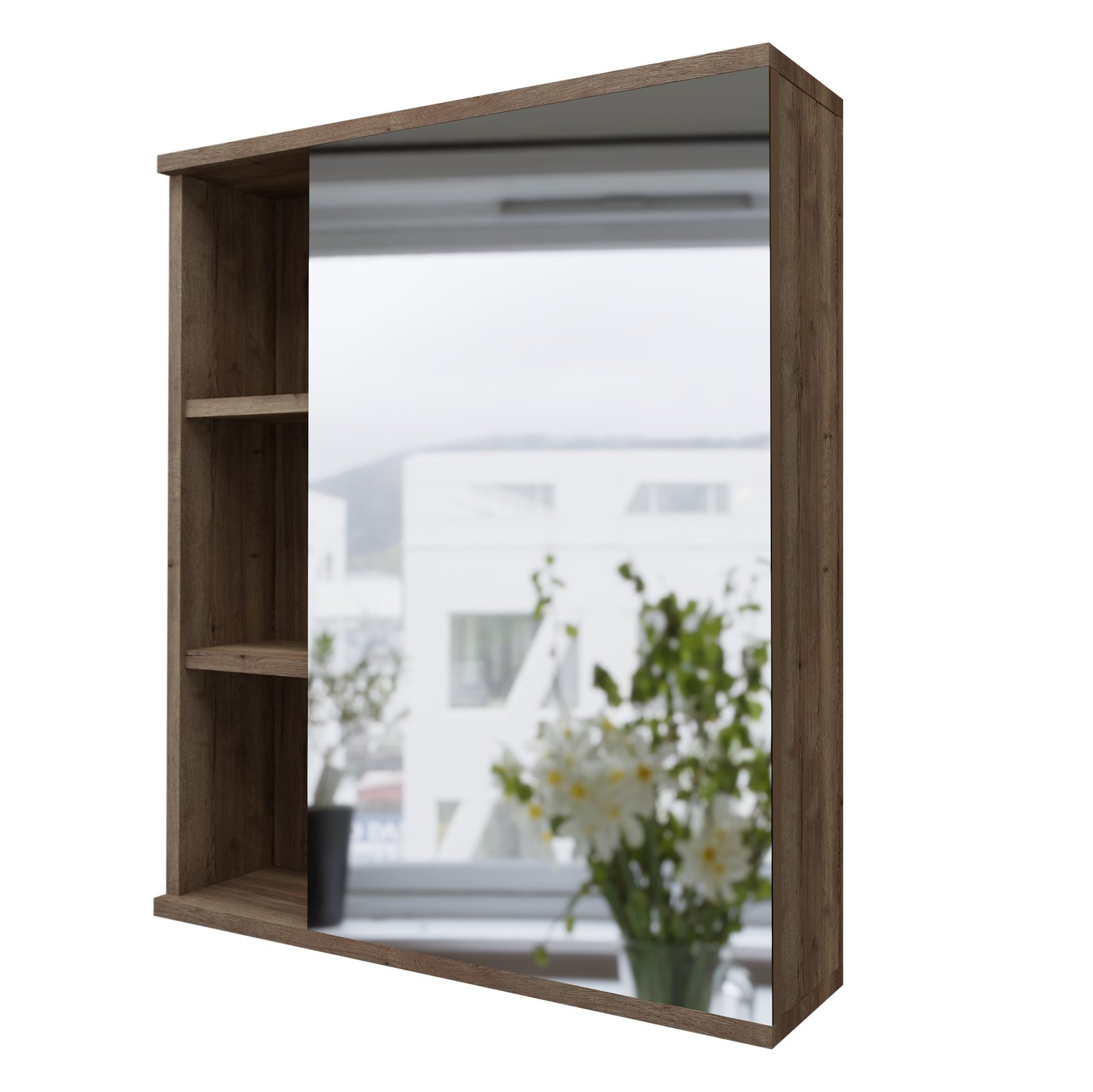 Шкаф-зеркало Форта 60 см - роскошная текстура и темный цвет дуба придают зеркалу сочетание современного дизайна.