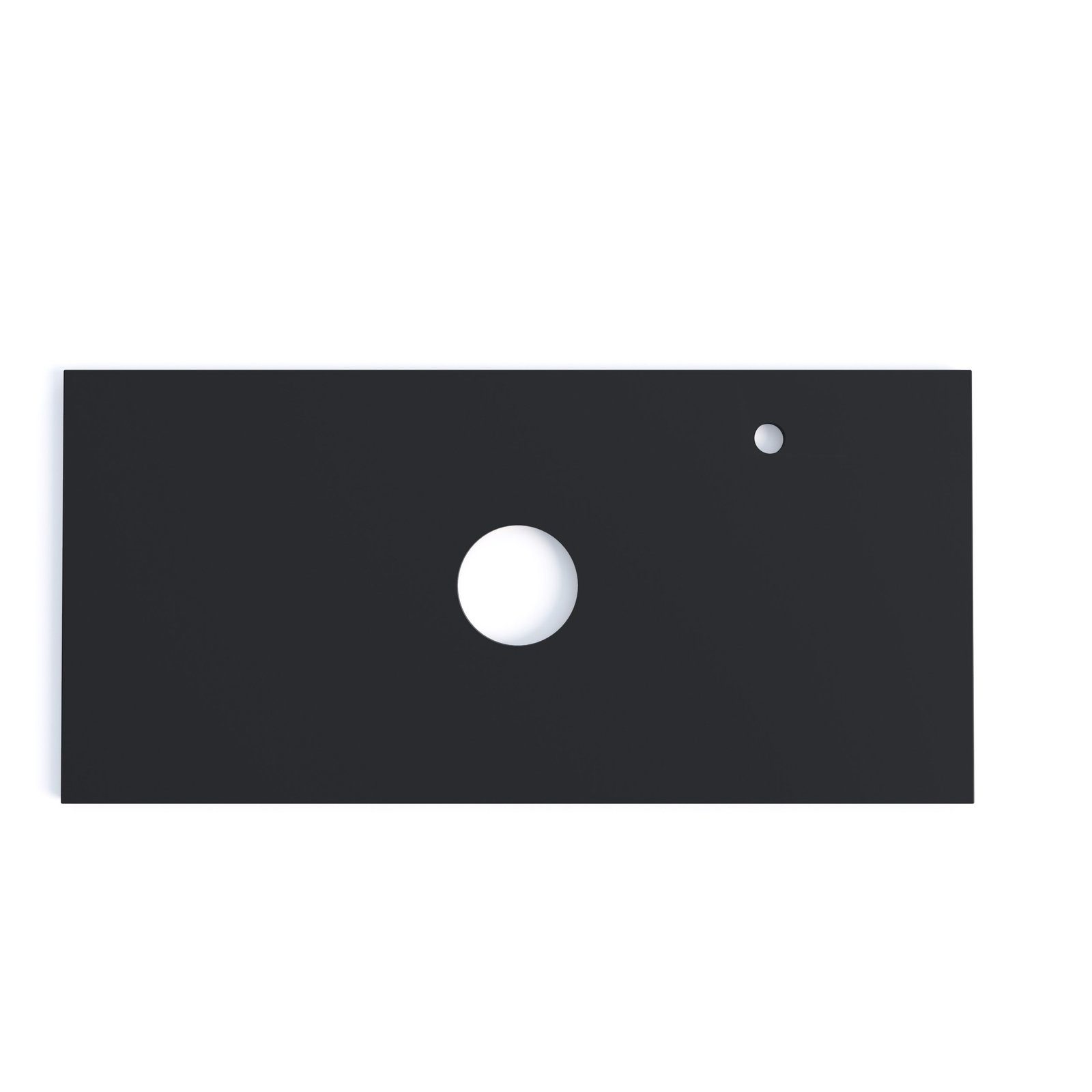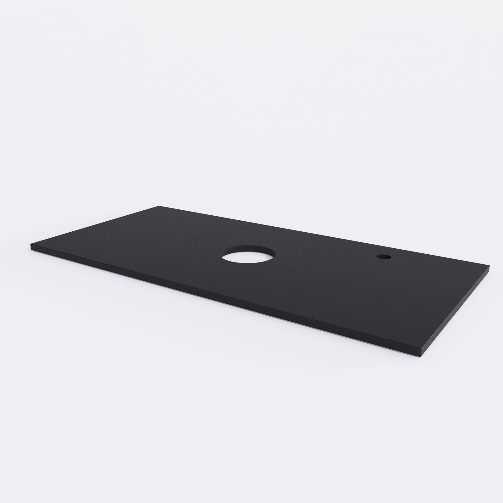 Столешница Флай 100 cм выполнена из МДФ: серая матовая пленка с покрытием SoftTouch придаст современный вид и позволит установить накладную раковину. Отверстие под смеситель в левом углу