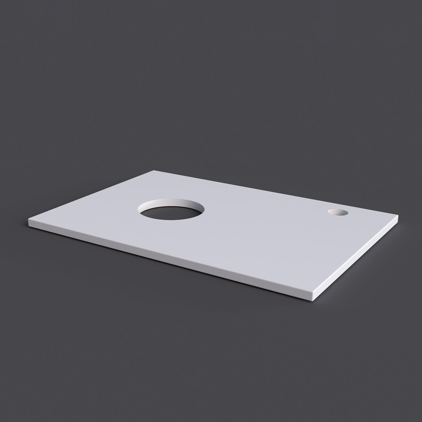 Столешница Флай 60 cм выполнена из МДФ: белая матовая пленка с покрытием SoftTouch придаст современный вид и позволит установить накладную раковину. Отверстие под смеситель в правом углу