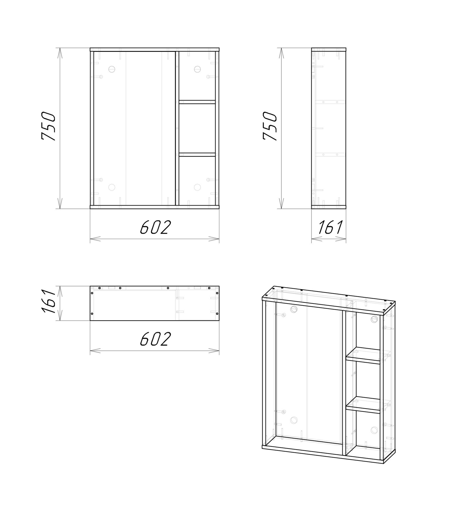 Зеркальный шкаф изготовлен из ЛДСП, устойчивой к механическим воздействиям, перепадам температур и высокой влажности.