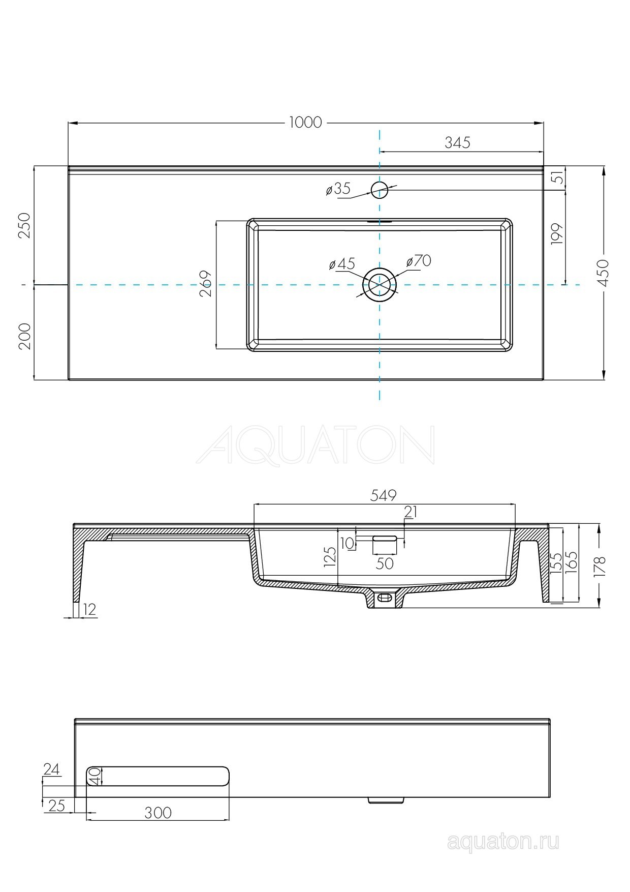 Раковина AQUATON Квадро Про 100 правая 1A733231QA01R