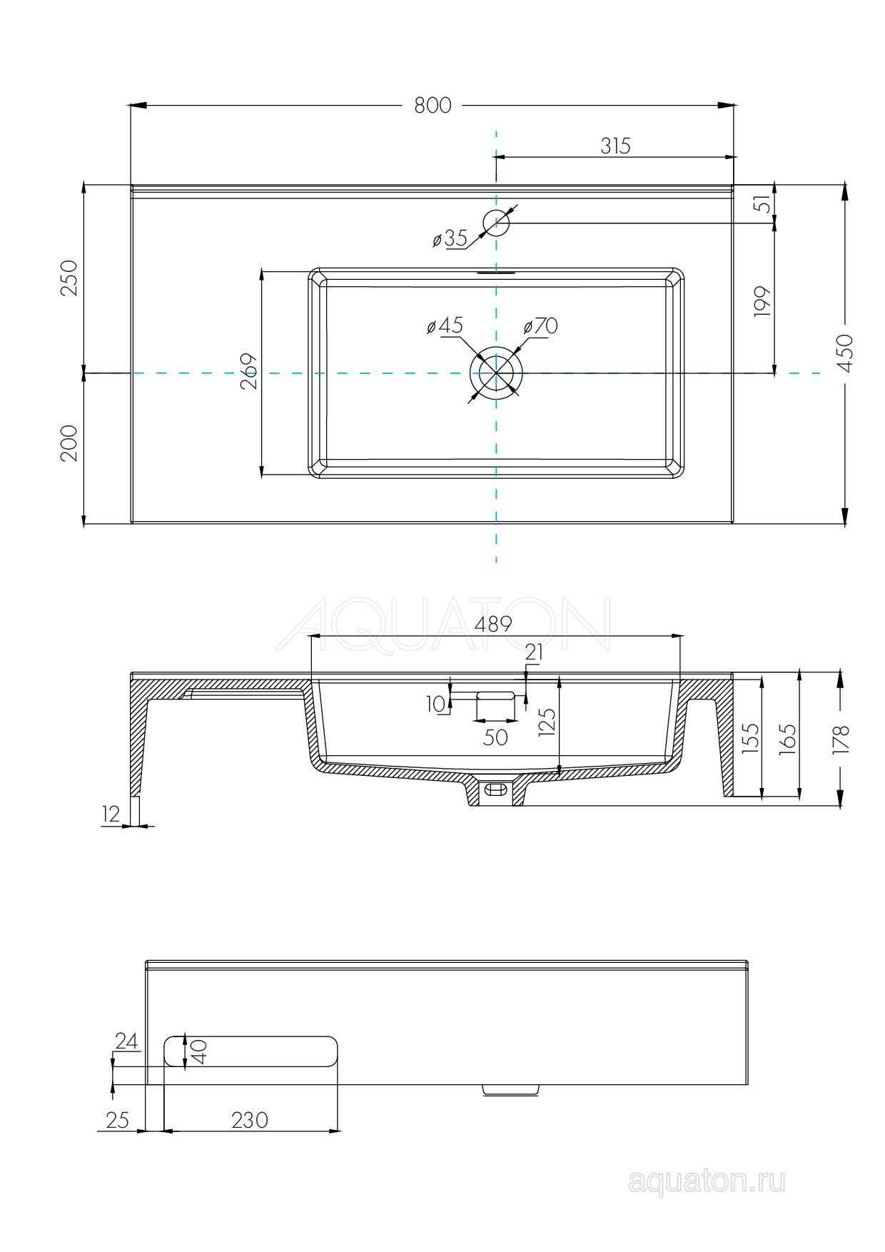 Раковина AQUATON Квадро Про 80 правая 1A734331QA01R