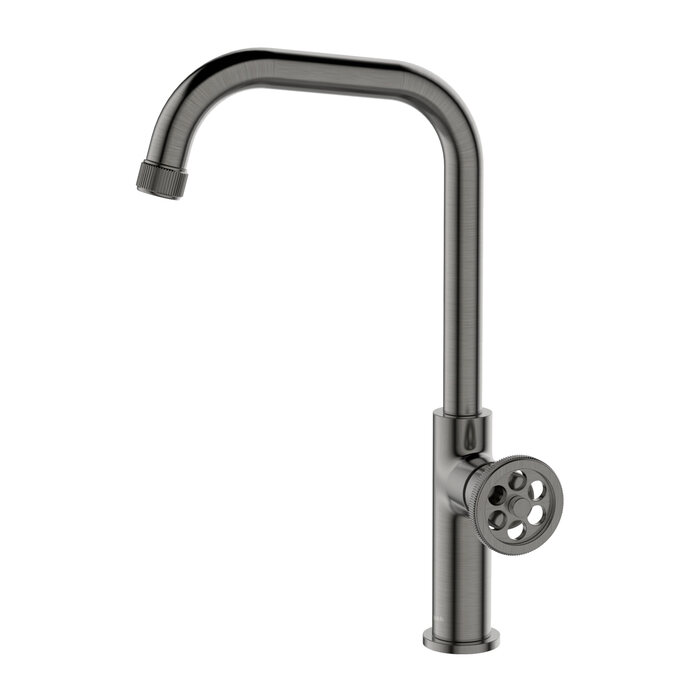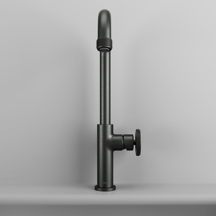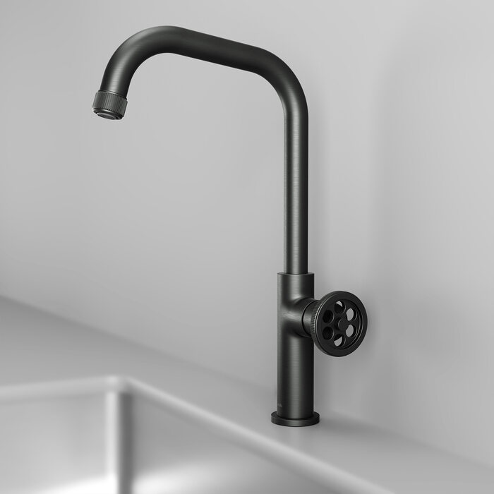 Однозахватный смеситель для кухни Grange в стильном оттенке графит имеет запоминающийся дизайн и яркие, неординарные детали. Круглая дизайнерская ручка красиво, оригинально выглядит и удобно поворачивается даже мыльной рукой. Такой смеситель прекрасно дополнит интерьер в трендовом стиле лофт и может быть установлен как на мойку, так и на столешницу.