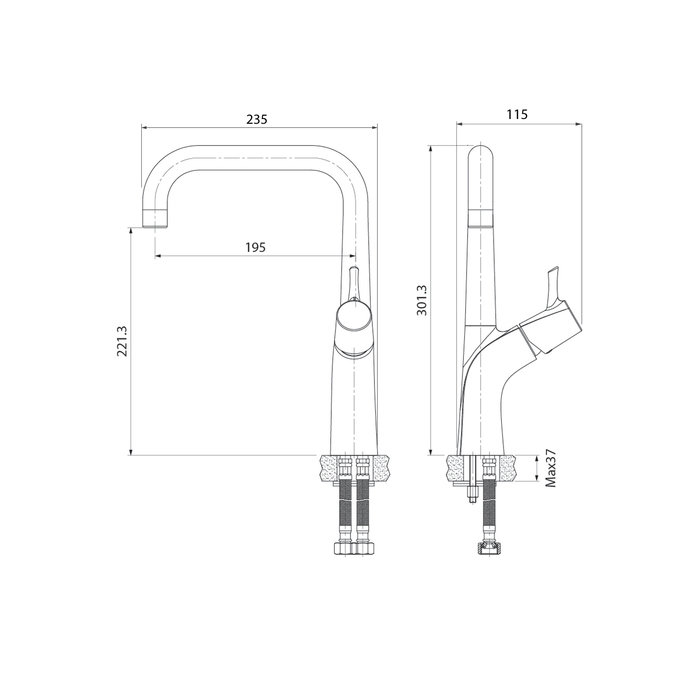 Смеситель для кухни Kitchen современного дизайна подойдет практически к любому интерьеру. Благодаря высокому поворотному изливу будет удобен в использовании даже с неглубокой мойкой.