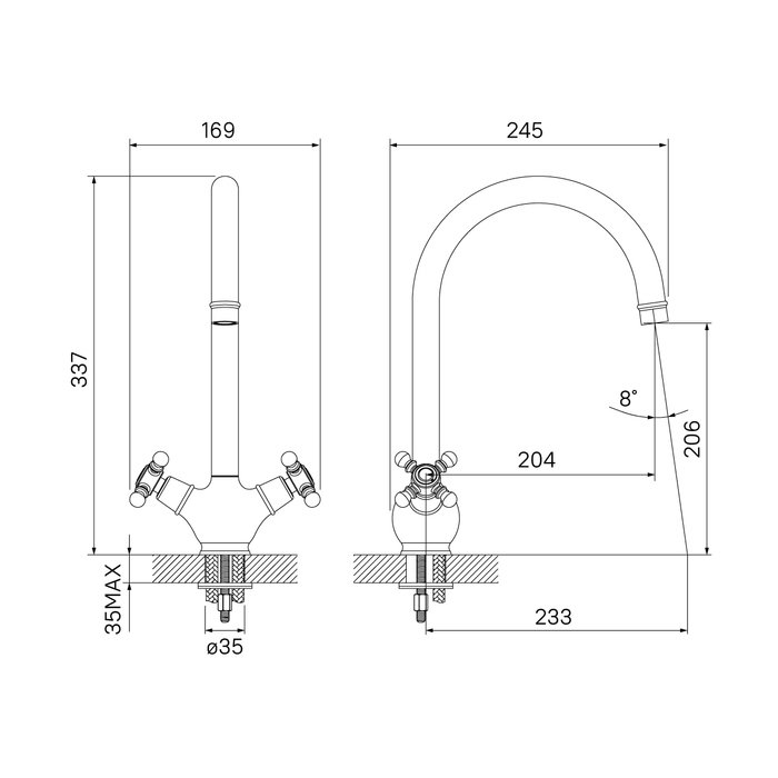 Смеситель для кухни IDDIS® изготовлен из высококачественной первичной латуни, прочной, безопасной и стойкой к коррозии. Инновационные технологии литья и обработки латуни, а также увеличенная толщина стенок смесителя обеспечивают его стойкость к перепадам давления и температур.
