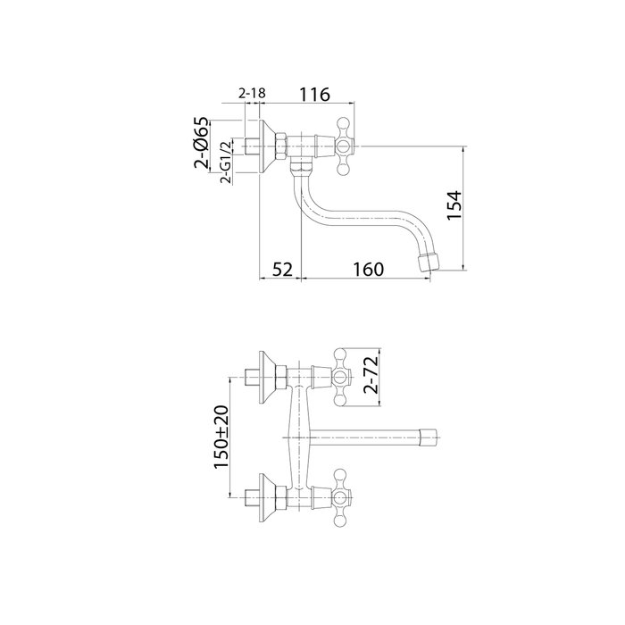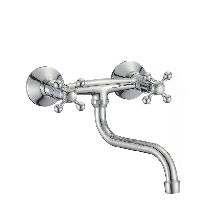 Настенный смеситель для кухни Duplex традиционного дизайна с удобными крестообразными ручками. Угол поворота ручек 180о обеспечивает точную регулировку температуры и напора воды, а термоизоляция не позволяет им нагреваться – взрослые и особенно дети защищены от случайных ожогов. Благодаря конструкции и поворотному изливу он удобен с любой кухонной мойкой.