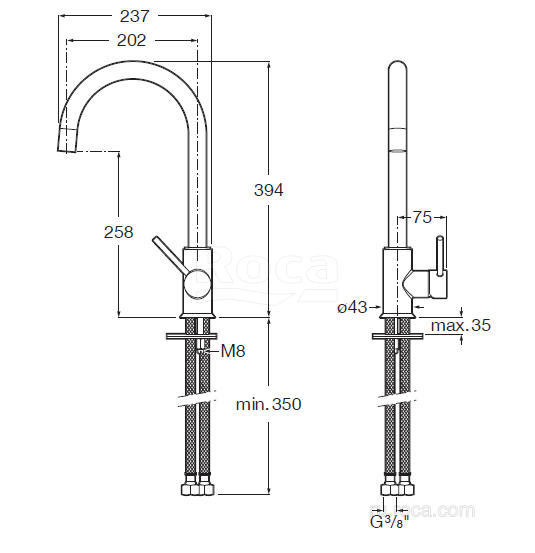 Roca Etna Смеситель однорычажный для кухни, матовый белый