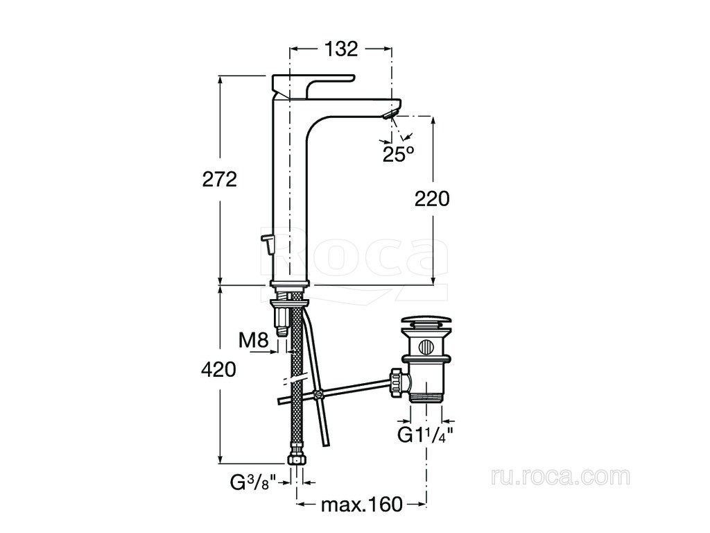 L20 Смеситель для раковины высокий, с донным клапаном, (coldstart)