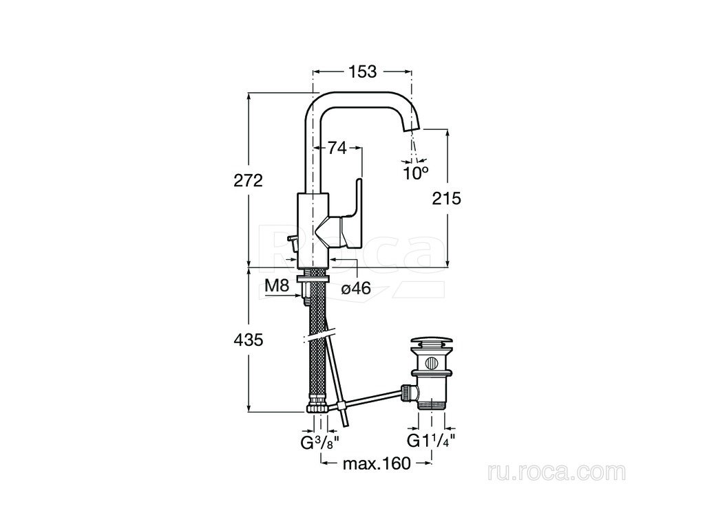 L20 Смеситель для раковины с боковым рычагом, с донным клапаном