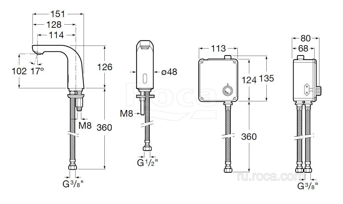 Смеситель Roca L20-E для раковины, батарейки 5A5309C00