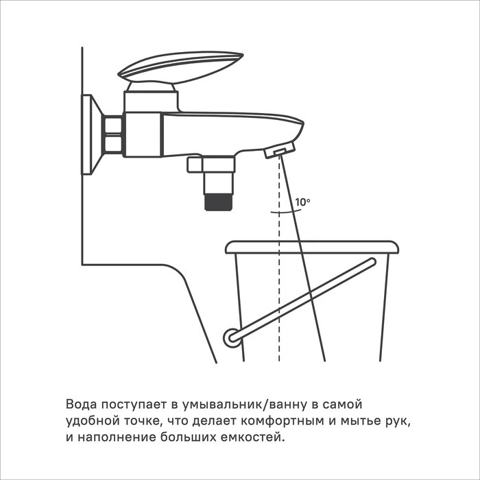 Смеситель для ванны Stone с дизайнерской утолщенной ручкой. Она обладает улучшенной эргономикой и благодаря продуманной форме удобно ложится в руку, что делает управление смесителем более комфортным.