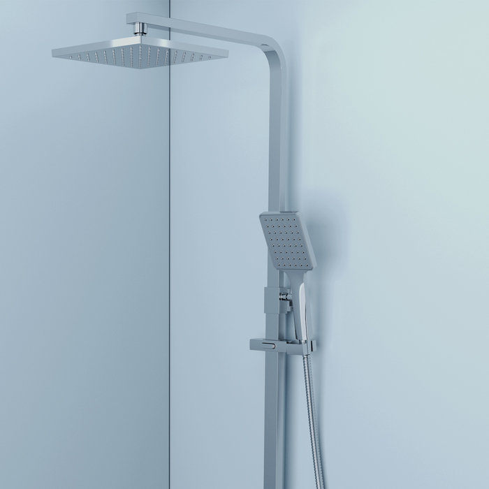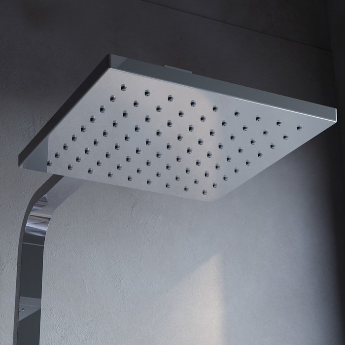 Смеситель для ванны Bild с верхним душем отличают выраженные геометрические формы и уникальный дизайн ручки-петли с тонкой изящной рамкой. Толщина рамки составляет всего 2 мм, при этом прочность ручки не снижается — она прослужит долгие годы. Излив эстетично интегрирован в корпус, вода из него поступает в ванну под комфортным углом. Стойка удобно регулируется по высоте.