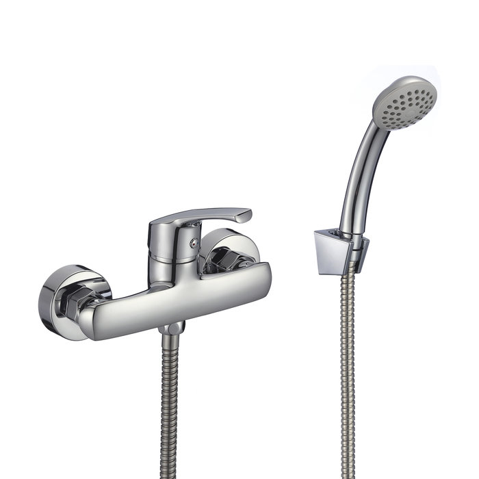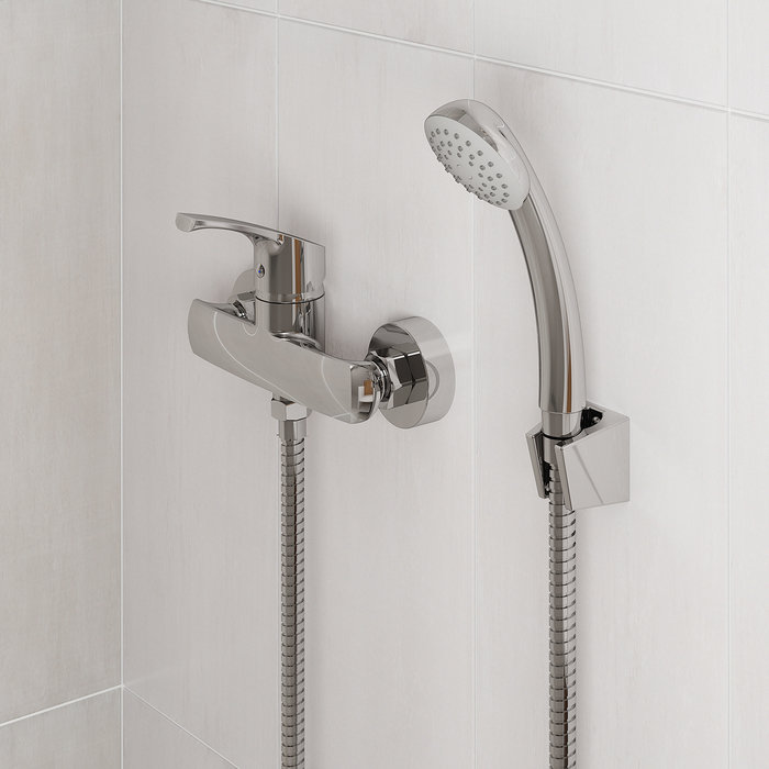 Смеситель для душа Sterm в современном стиле с удобной прямоугольной ручкой округлой формы, что позволяет легко регулировать температуру и напор воды даже мыльной рукой. В комплекте лейка для душа, шланг и держатель для лейки.