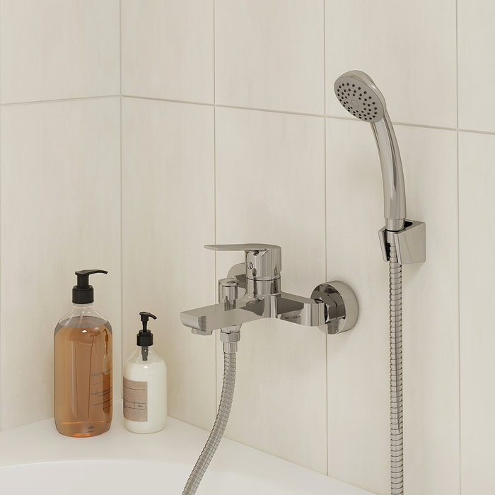 Лаконичный и стильный образ смесителя для ванны Helic подойдет для самой современной ванной комнаты. Регулировать температуру и напор воды невероятно легко даже мыльной рукой с помощью удобной ручки прямоугольной формы. Вытяжной дивертор смесителя работает при любом давлении воды, переключая поток воды на душевую лейку (? 67 мм) или в комбинированном режиме. Незапланированный душ или мокрый пол в ванной не страшны благодаря надежному фиксированному изливу и механизму автовозврата дивертора в положение «излив». В комплекте ручная лейка из прочного ABS-пластика, ПВХ-шланг (1,5 м) в оплетке из нержавеющей стали и все необходимое для установки смесителя Helic без лишних затрат.