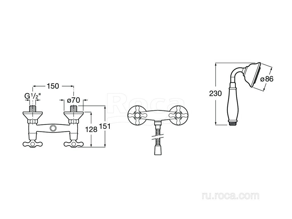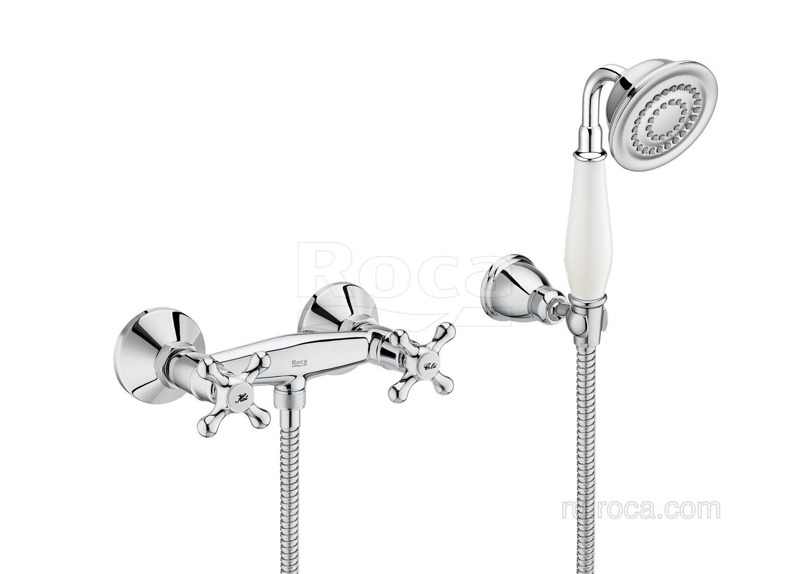 Roca Carmen Смеситель двухвентильный для душа с душевым набором, хром