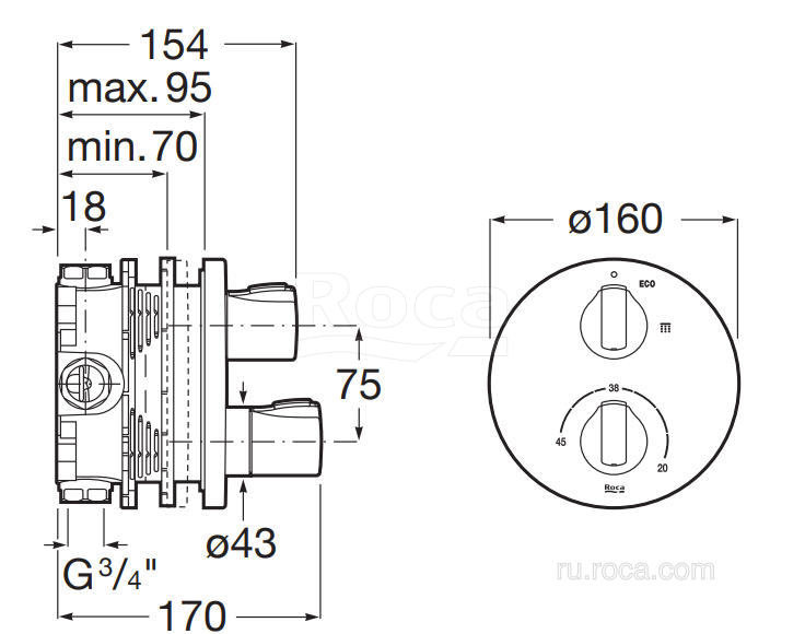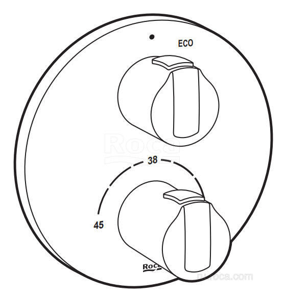 - Roca Quick reaction - система управления температурой позволяет точно установить нужный градус подачи воды, выбранная температура воды остается неизменной во время использования; возможность получить воду нужной температуры в считанные секунды экономит время на настройку, а также расход воды и энергии;