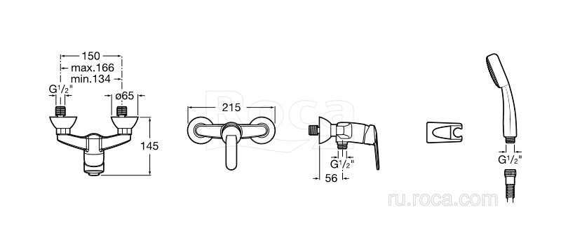 Roca Victoria Смеситель однорычажный для душа с душевым набором