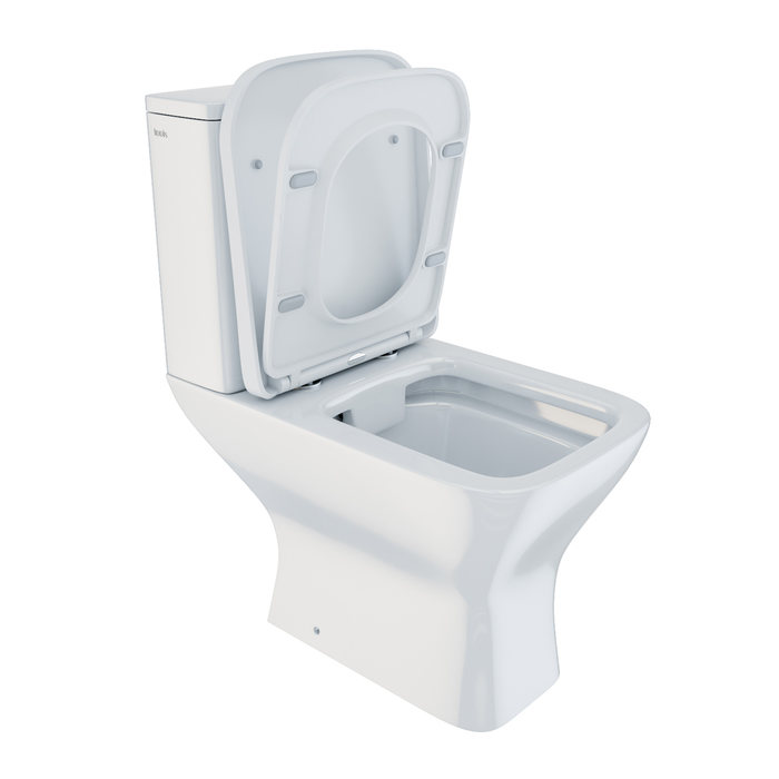 Унитаз-компакт с сиденьем из дюропласта с Soft Close и Easy Fix, безободковая конструкция, двухуровневая водосливная арматура, кнопка смыва 38 мм, прямой выпуск, высококачественный санфарфор. Размеры: 790х373х605 мм. Упаковка: картонная коробка.