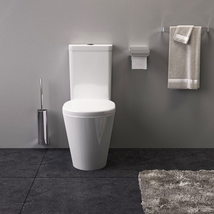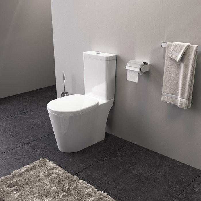 Унитаз-компакт с сиденьем из дюропласта с функциями Soft Close и Easy Fix, горизонтальный выпуск, двухуровневая водосливная арматура с кнопкой 38 мм. Упаковка: картонная коробка. Белизна и жемчужный блеск надолго