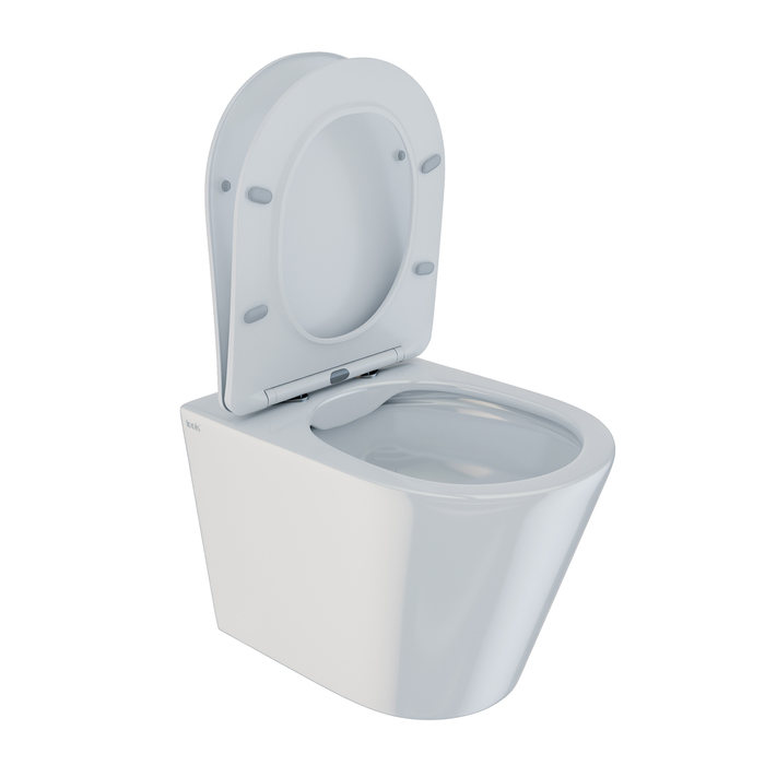Унитаз подвесной безободковый с сиденьем из дюропласта с функциями Soft Close, Easy Fix. Размер 515х355х365 мм (ДхШхВ). Сиситема скрытых крепежей. Скрытый гидрозатвор. Система антивсплеск. Горизонтальный выпуск, высококачественный санфарфор. Комплект крепежных элементом для скрытого монтажа. Упаковка: картонная коробка. Белизна и жемчужный блеск надолго