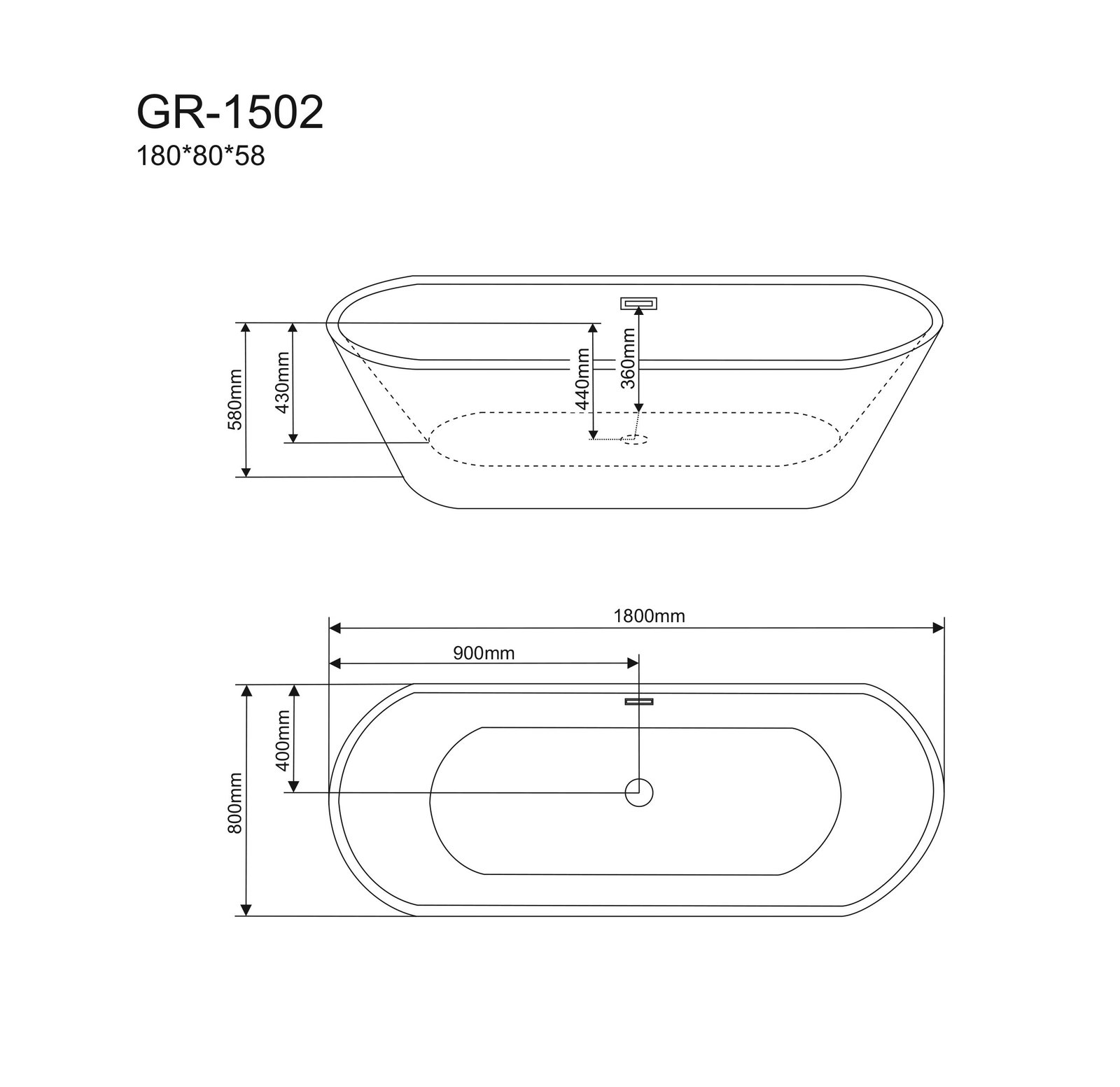 Ванна отдельностоящая GR-1502 (180x80x58) GROSSMAN
