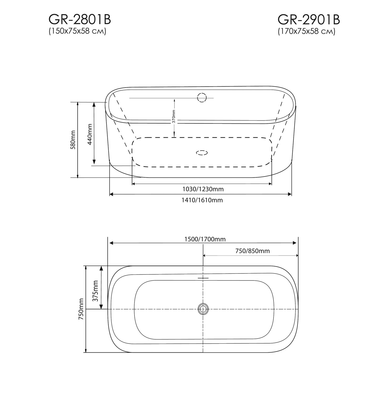 Ванна отдельностоящая GR-2901 Black (75x170x58) GROSSMAN