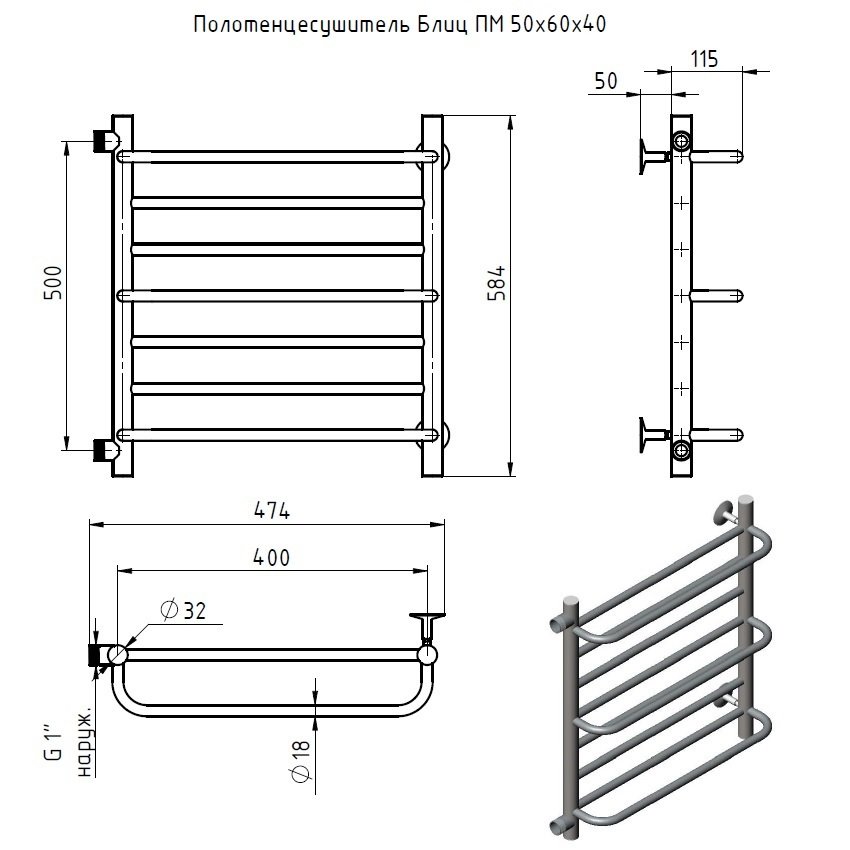 Полотенцесушитель Блиц ПМ 50*60*40 (ЛЦ21)