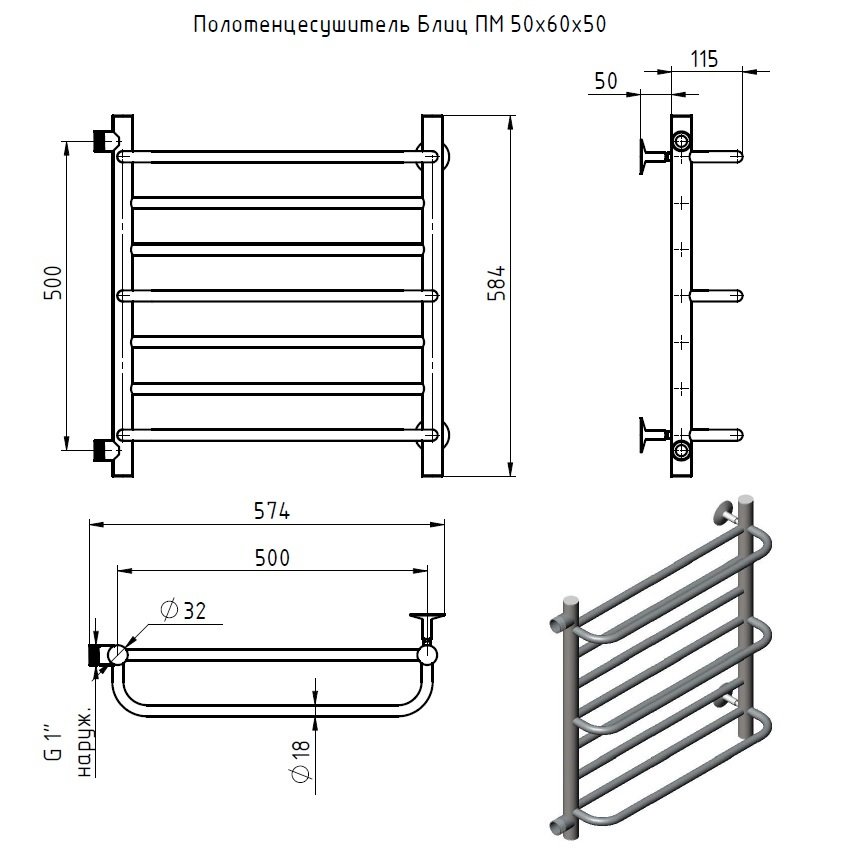 Полотенцесушитель Блиц ПМ 50*60*50 (ЛЦ21)