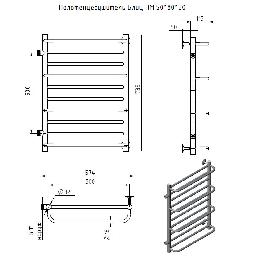 Полотенцесушитель Блиц ПМ 50*80*50 (ЛЦ21)