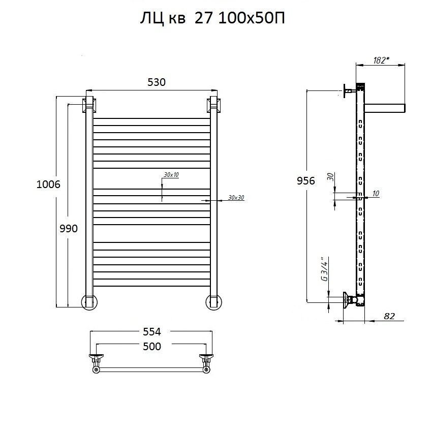 Полотенцесушитель ЛЦ кв 27 100*50П #