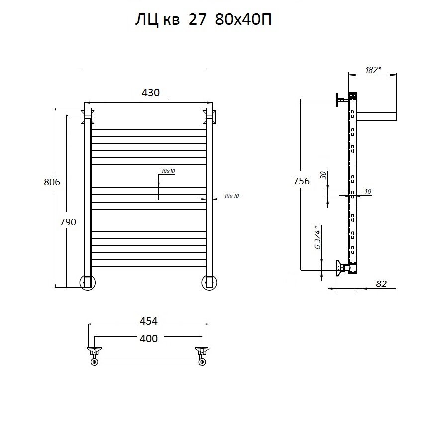Полотенцесушитель ЛЦ кв 27 80*40П #