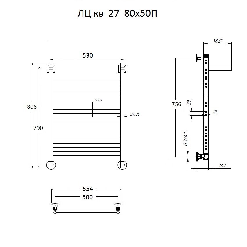 Полотенцесушитель ЛЦ кв 27 80*50П #