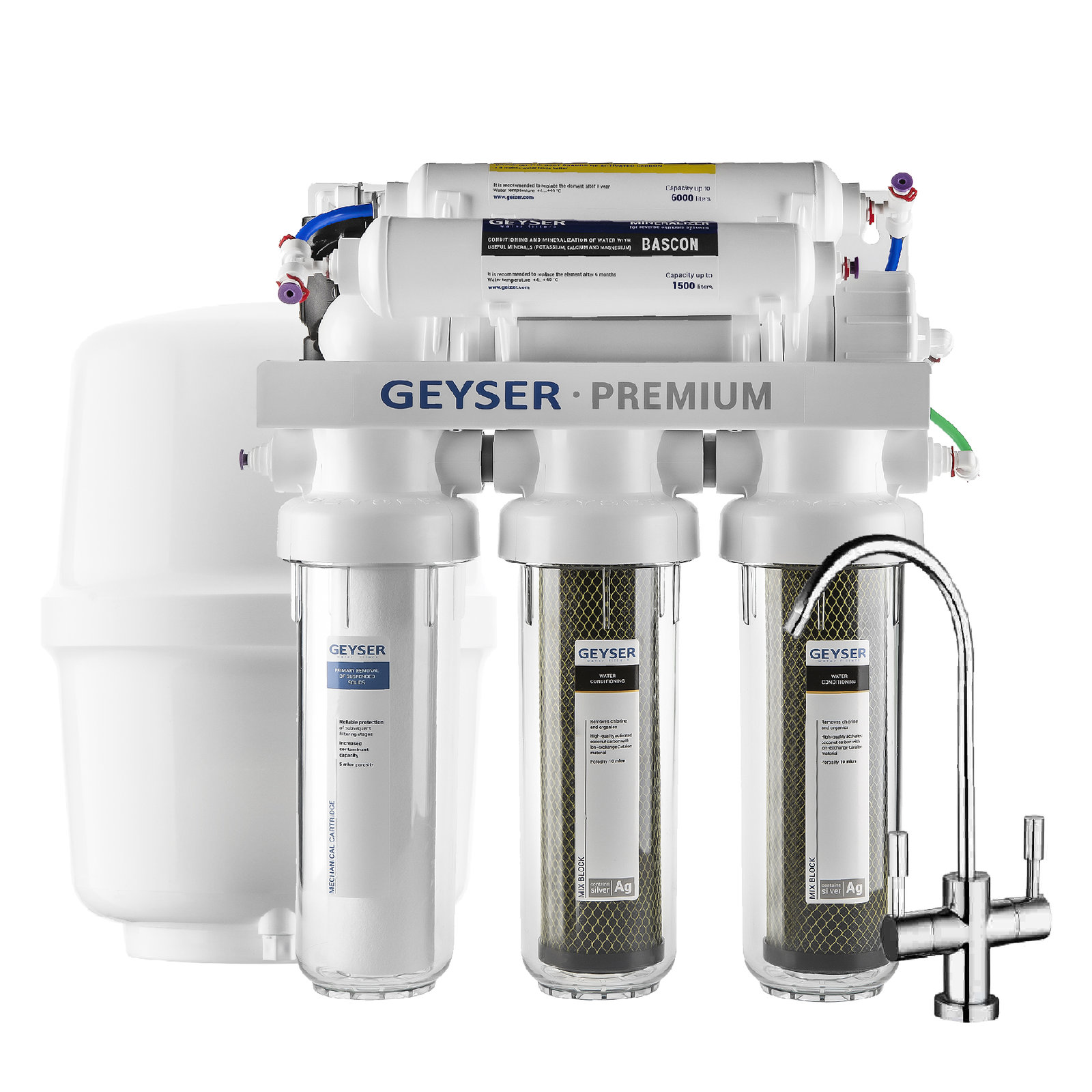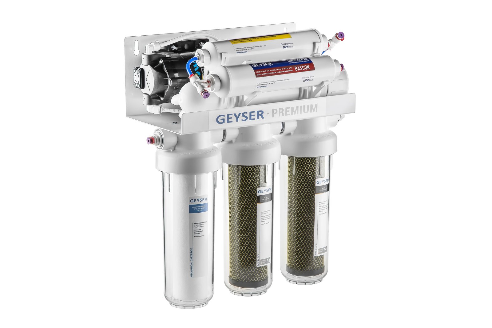 Система обратного осмоса Гейзер Премиум используется для доочистки водопроводной воды от вредных примесей, таких как железо, бактерии, хлорорганические и органические примеси, хлор, тяжелые металлы, нитраты, механические частицы, избыток солей жесткости, а также для корректировки ее минерального состава, что делает воду абсолютно