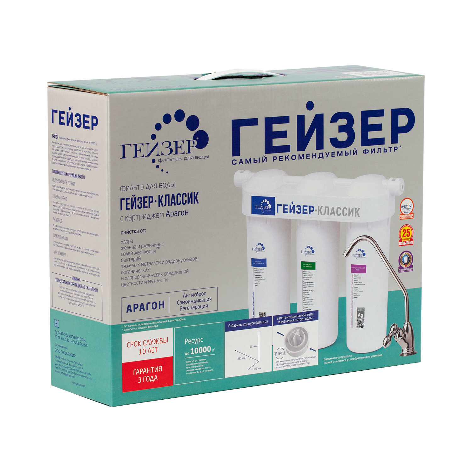 Фильтр Гейзер Классик для жесткой воды специально разработан для регионов со средним уровнем минерализации. Важным свойством фильтра является самоидикация - уменьшение напора в кране для чистой воды, фильтр сам подскажет, когда пришло время менять картриджи. Картридж Арагон 2 можно многократно регенерировать (восстанавливать его свойства в домашних условиях), что позволит Вам сэкономить на покупке сменных картриджей.