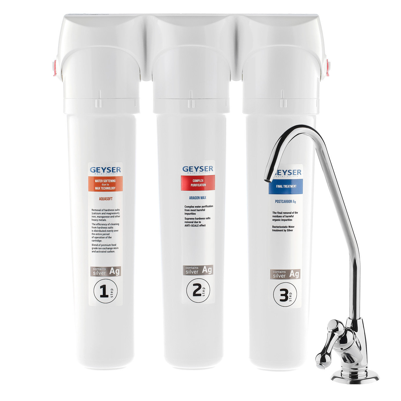Компактная система Гейзер Смарт Макс предназначена для эффективного умягчения, снижения накипи и очистки жесткой воды. Благодаря использованию новейших инновационных фильтрующих материалов - картриджа Арагон Смарт Макс и специальной комбинации ионообменных смол АкваСофт — способность фильтра Гейзер Смарт Макс устранять накипь в 6 раз выше, чем у традиционных систем для умягчения воды! При этом фильтр не нуждается в периодическом обслуживании (регенерации).