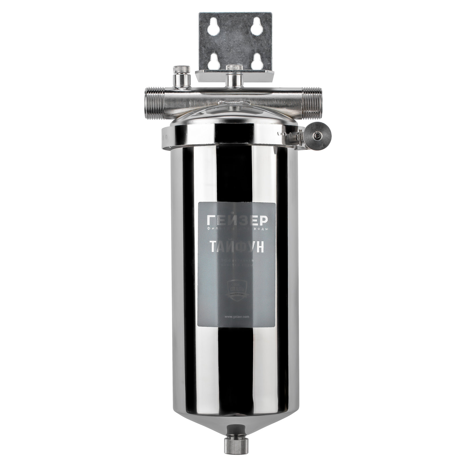Гейзер Тайфун 10ВВ – универсальный магистральный фильтр для комплексной очистки горячей и холодной воды (с низким и средним уровнем минерализации) во всей квартире или загородном доме. Корпус фильтра выполнен из высококачественной нержавеющей стали марки 304L. Внизу корпуса находится клапан слива воды для удобной замены картриджа. В комплекте картридж Арагон 3 10BB.