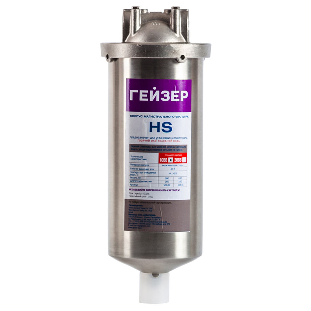 Корпус Гейзер HS ВВ10"х1" рассчитан на работу под давлением, монтируется на входе в систему горячего или холодного водоснабжения квартиру или загородный дом. В зависимости от установленного картриджа может выполнять очистку от механических примесей (ржавчина, окалина, песок и т.д.), хлора и органических соединений, солей жесткости, железа и марганца.